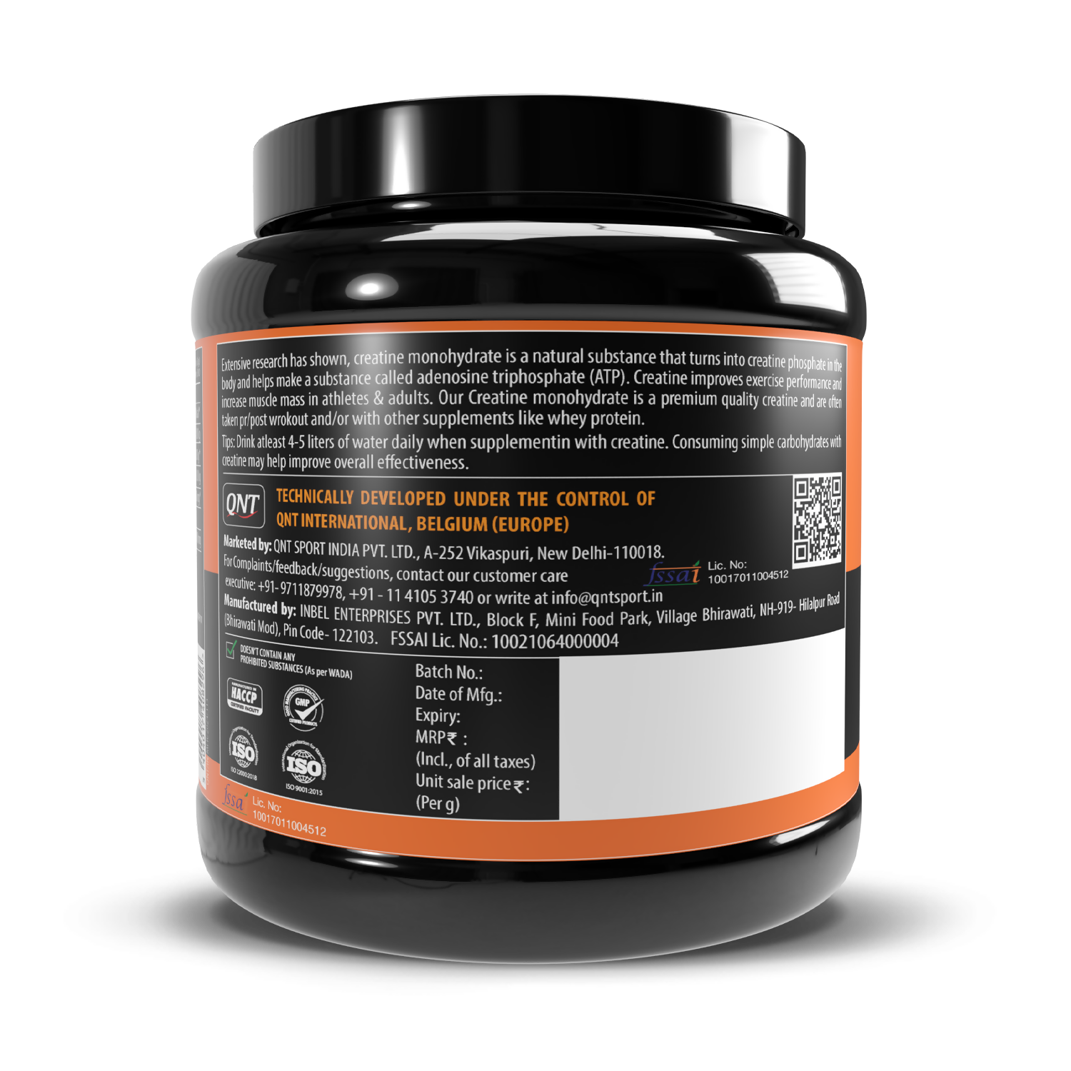 QNT Creatine Monohydrate | 100% Pure & Micronized Powder | FSSAI-Tested | Enhanced Performance & Muscle Growth
