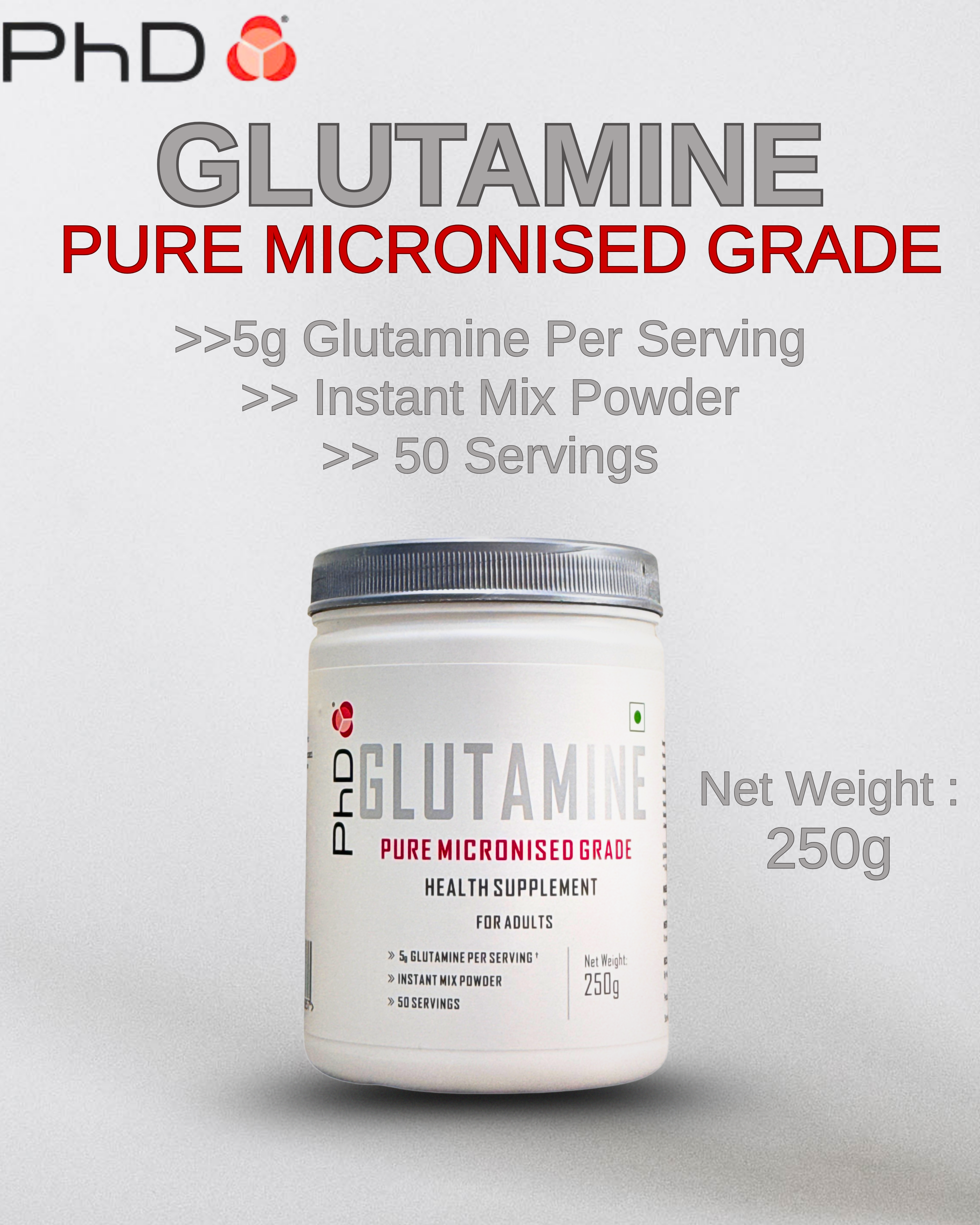 PHD Glutamine – Pure Micronised L‑Glutamine, Unflavoured, 250 g