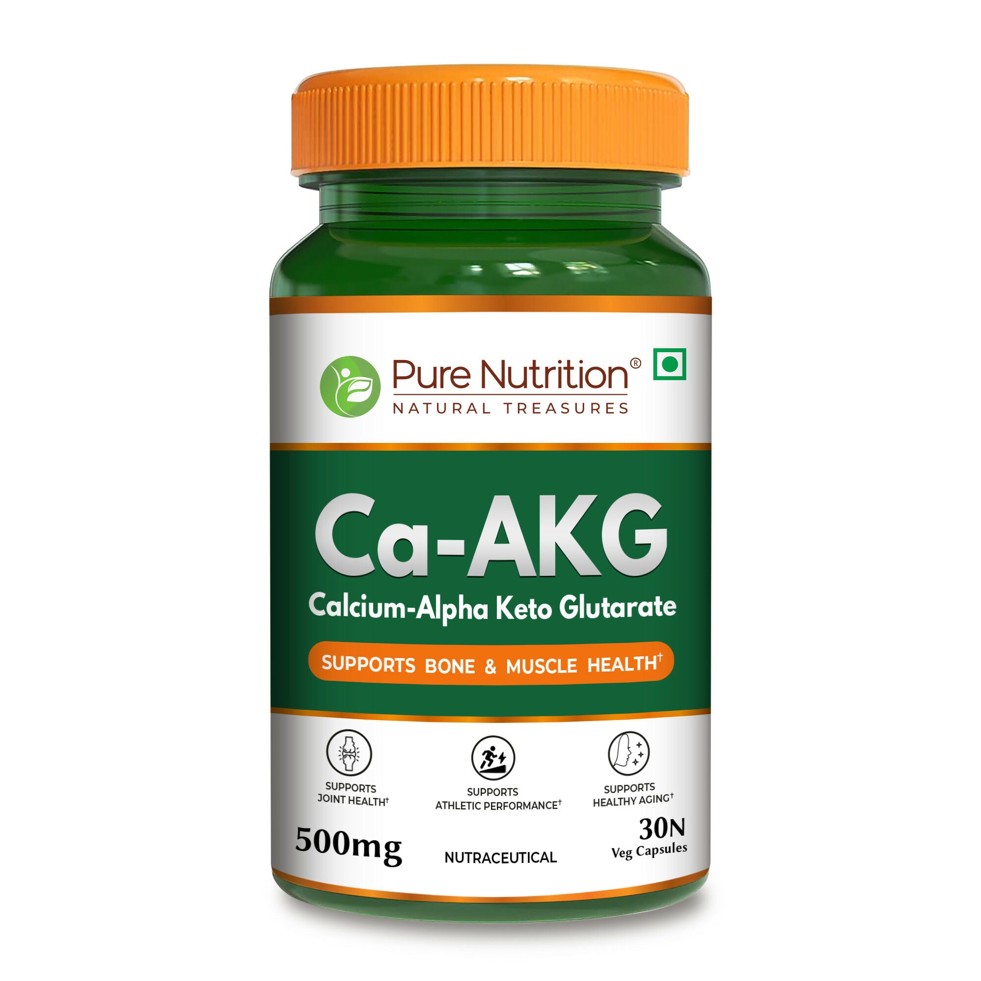 Pure Nutrition Ca-AKG - (500mg) - 30 Veg Capsules | Calcium Alpha-Ketoglutarate Supplements For Cellular Energy & Joint Health | Support Healthy Aging, Athletic Performance & Muscle Recovery