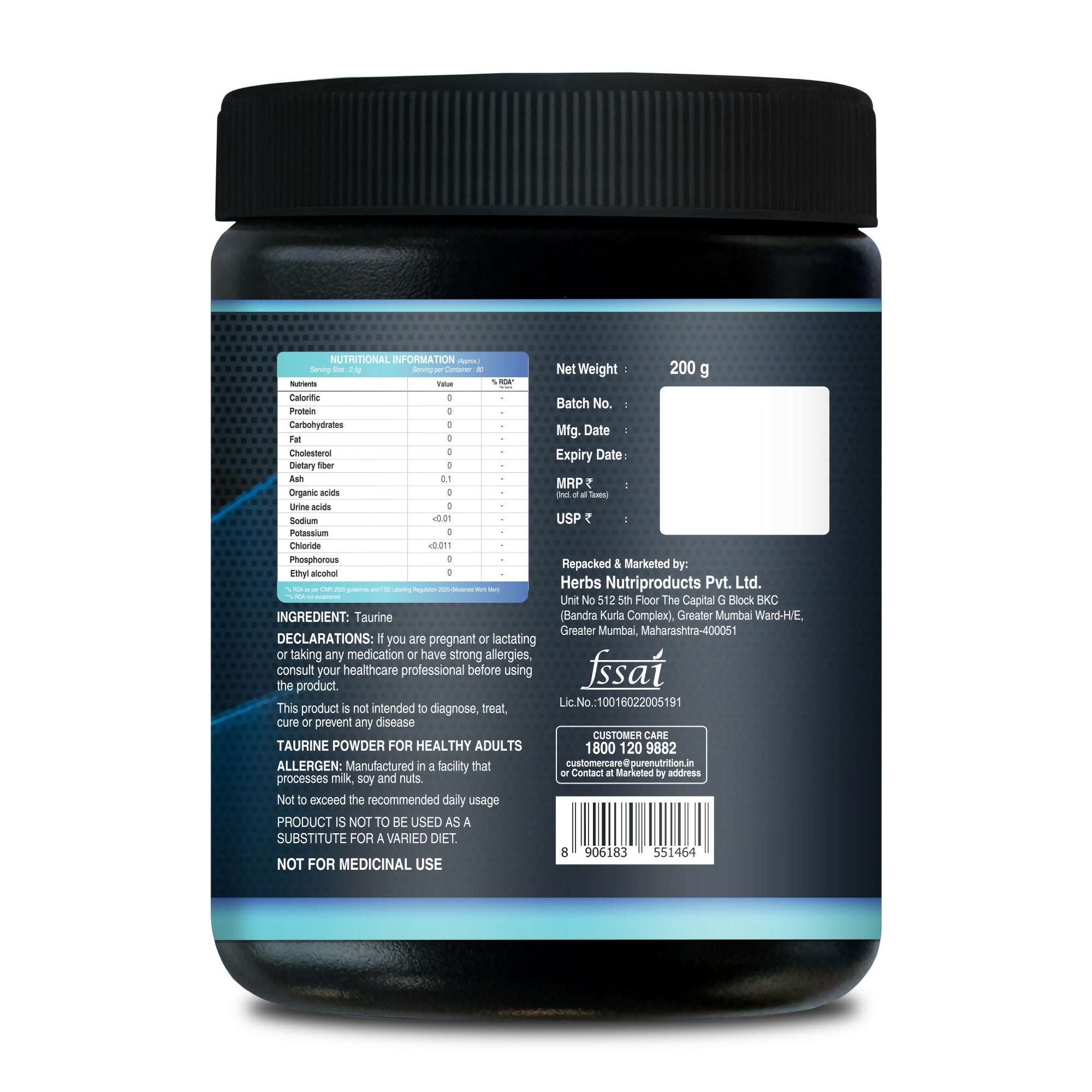 Pure Nutrition L-Taurine Powder 200g | Premium Amino Acid Supplement | Boosts Muscle Recovery & Performance | Supports Energy, Heart Health, & Overall Wellness | Ideal for Fitness, Stamina, & Active Lifestyle
