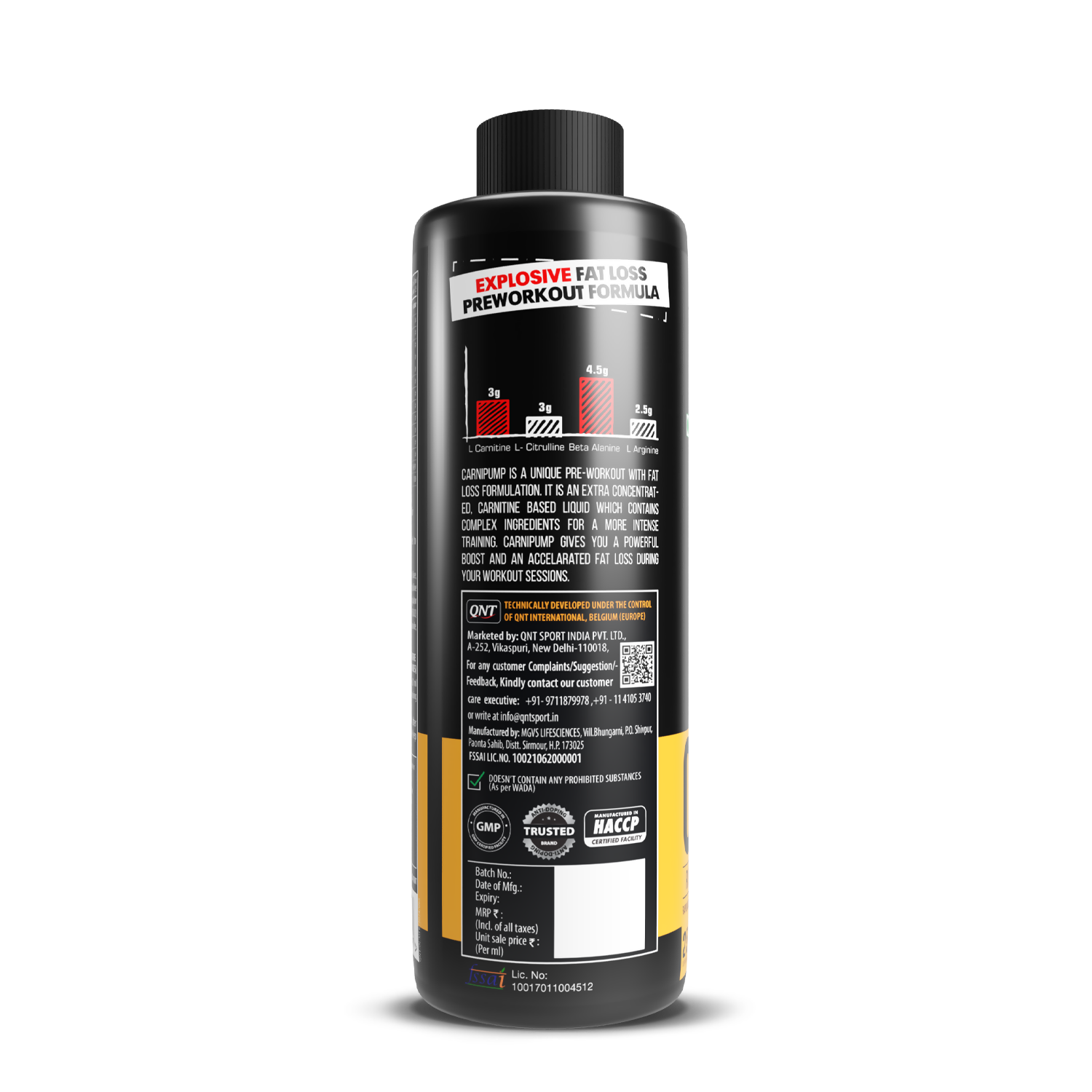 QNT CARNIPUMP | Liquid Pre Workout | Fat Loss | Instant Energy Drink | Supports Muscle Gain & Fast Muscle Recovery
