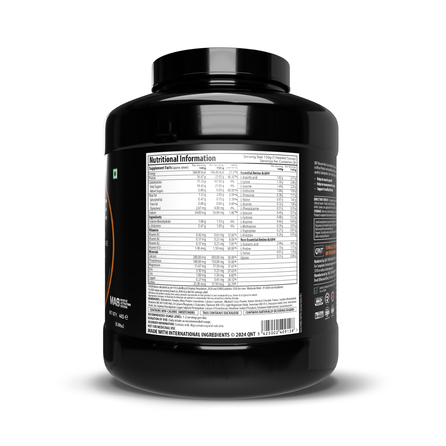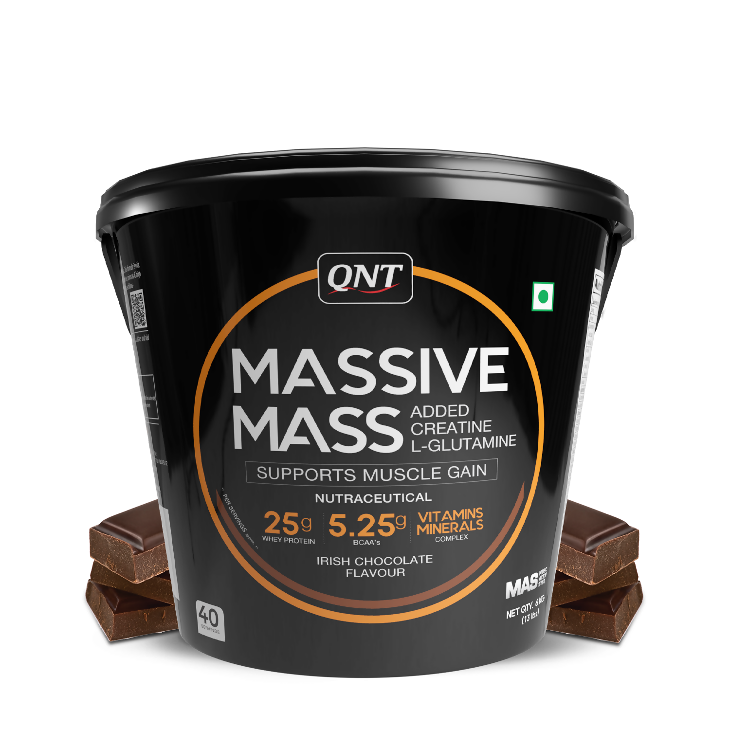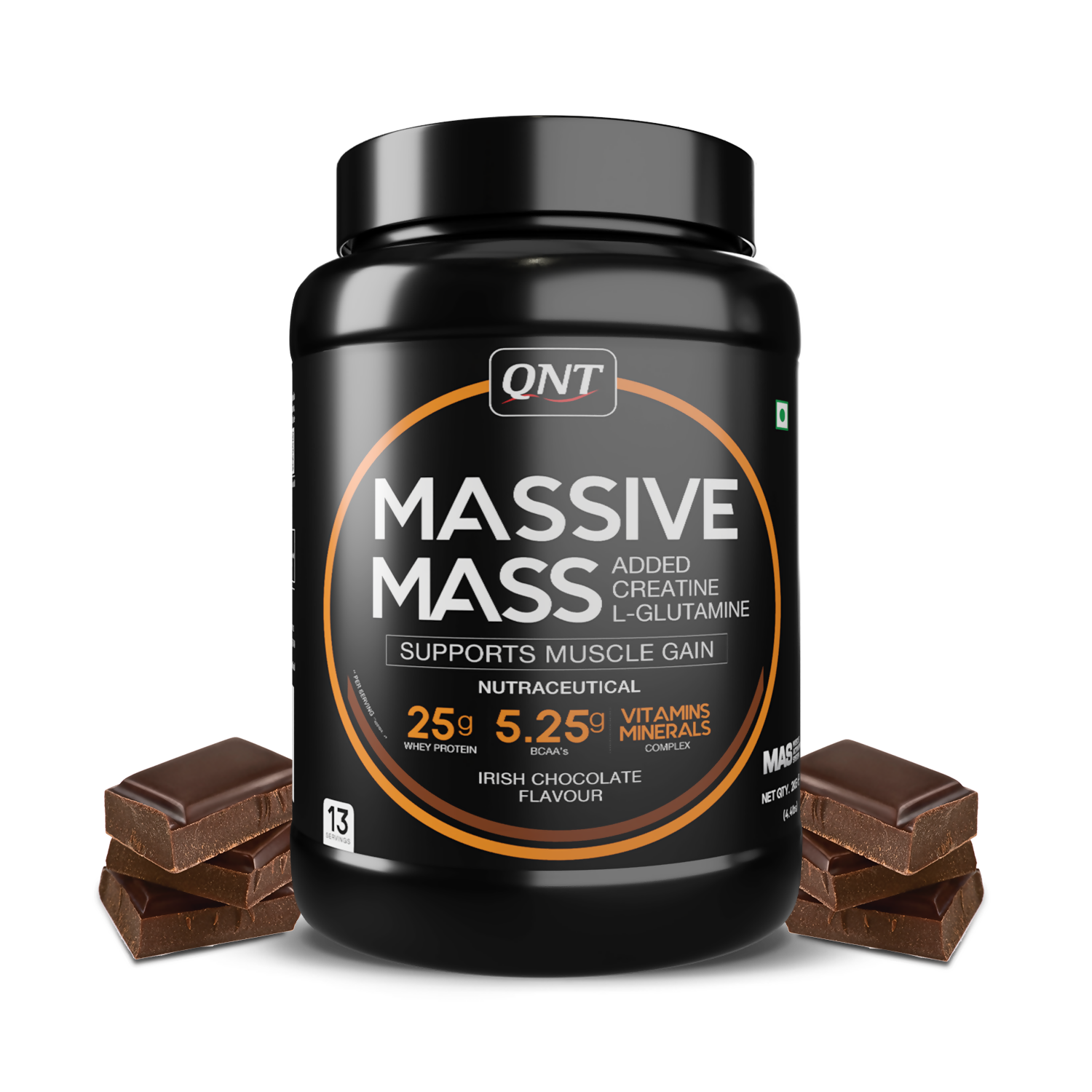 QNT Massive Mass Gainer |Irish Chocolate | 25g Protein, 5.7g BCAA | Supports Weight Gain, Recovery & Strength