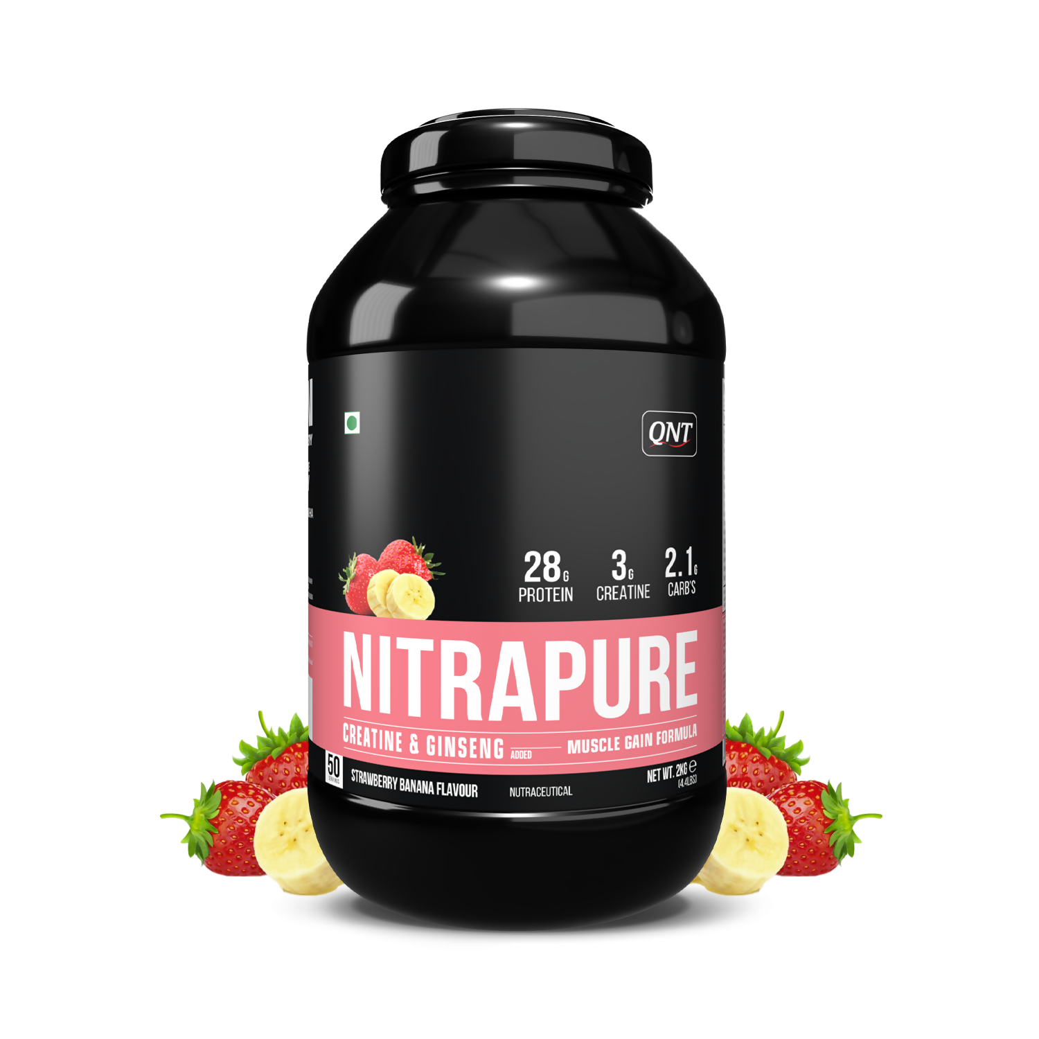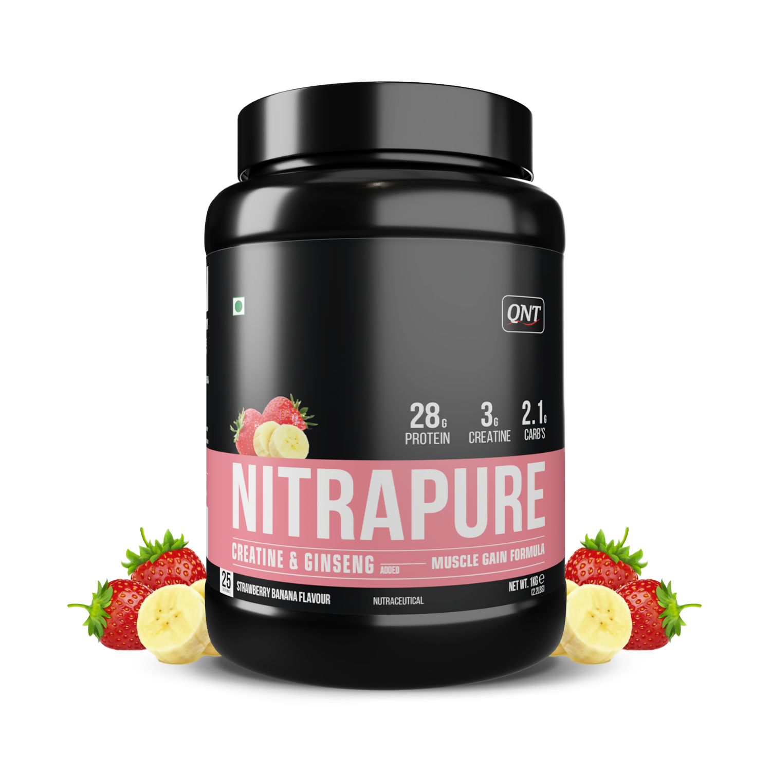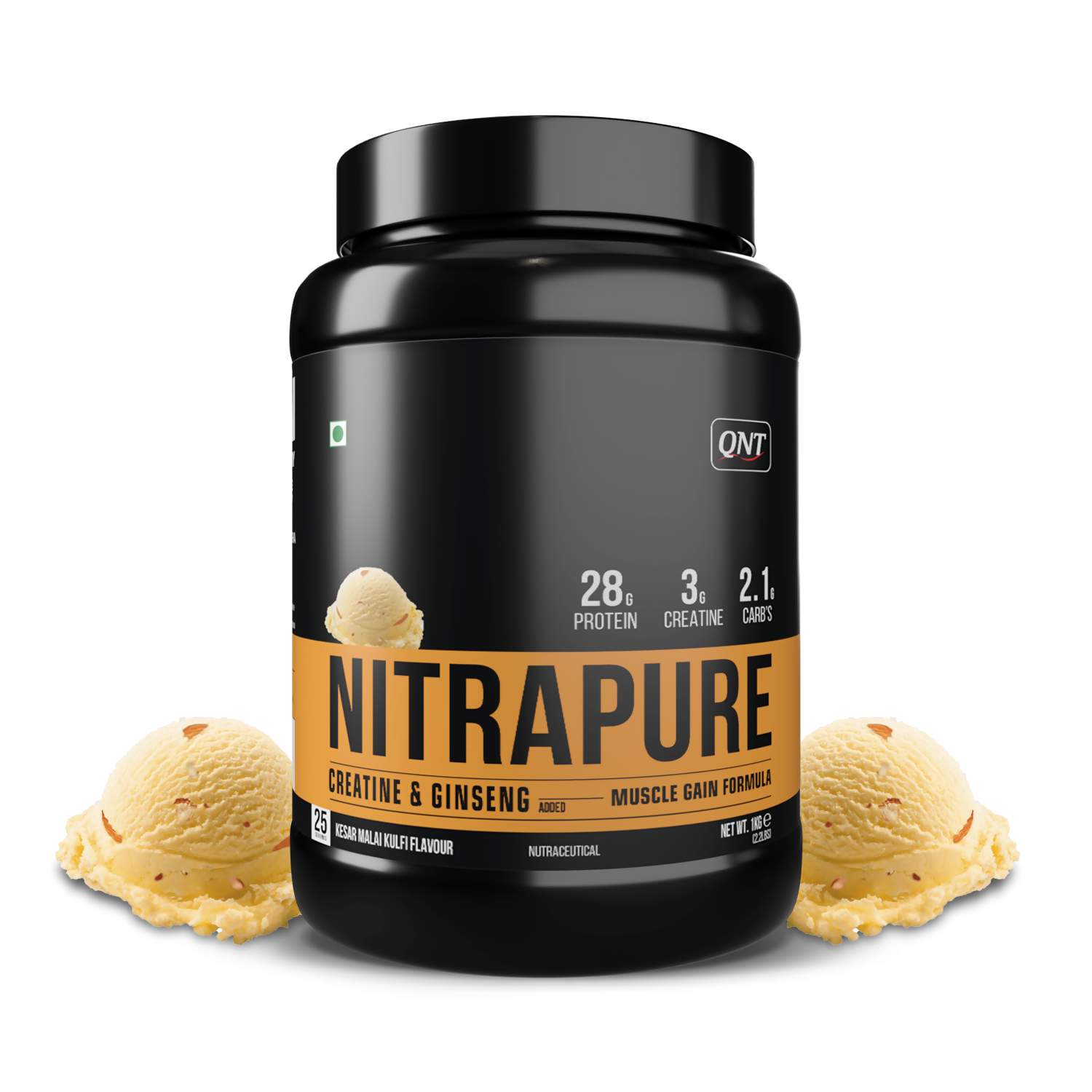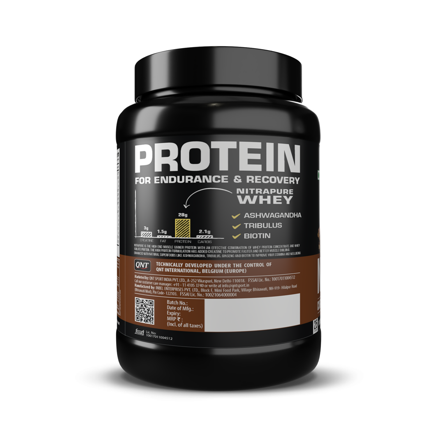QNT Nitrapure, Blend of Whey Isolate & Concentrate | Enriched with Ashwagandha, Ginseng & Tribulus | Best Whey Protein for Muscle Gain | 28g Protein, 3g Creatine (per scoop)