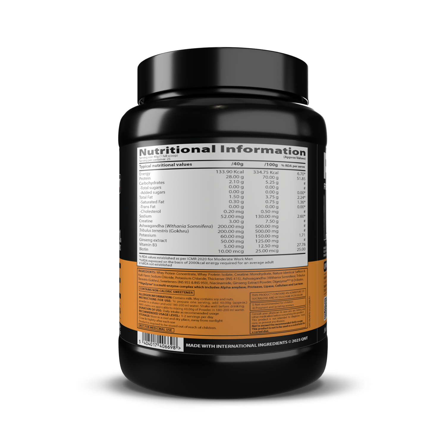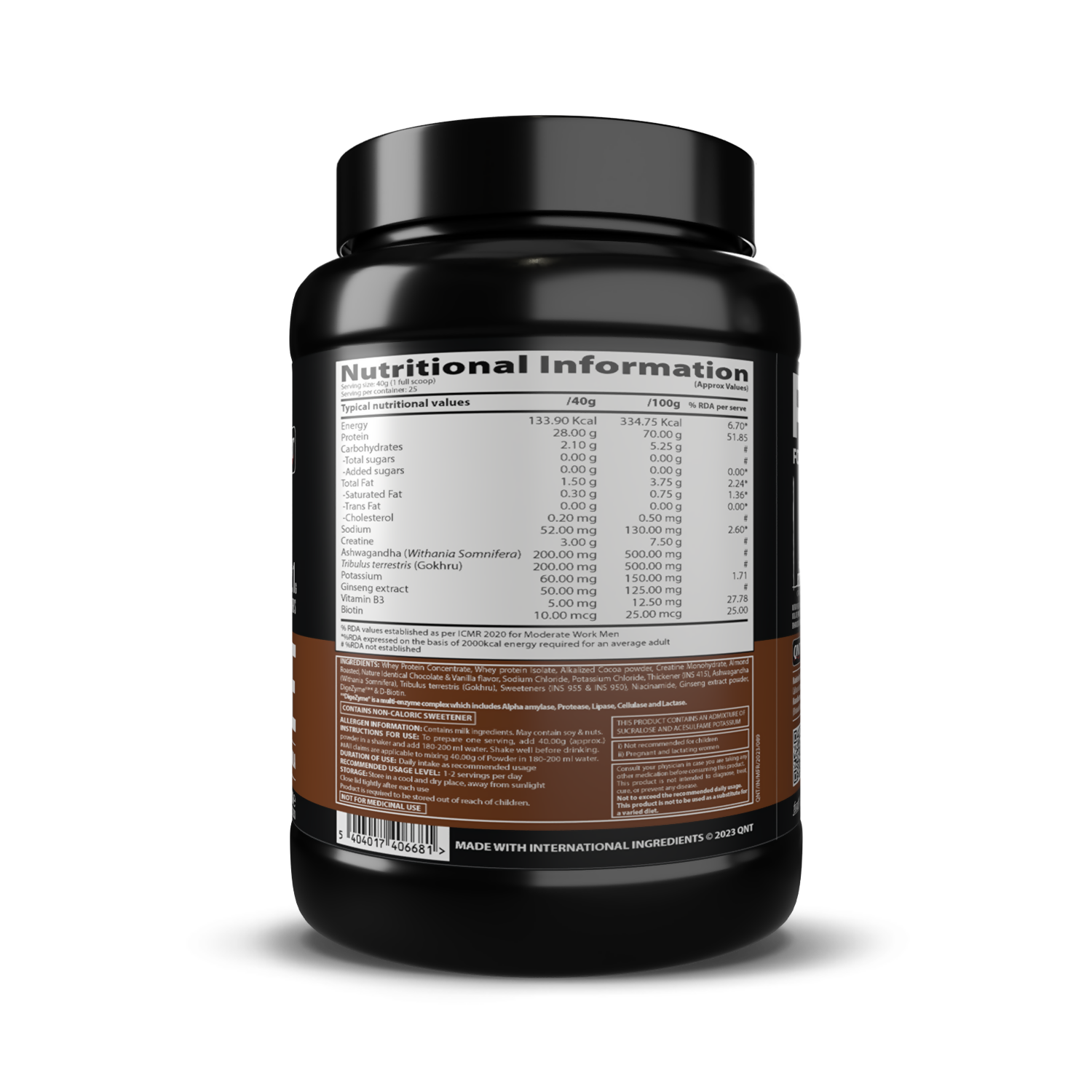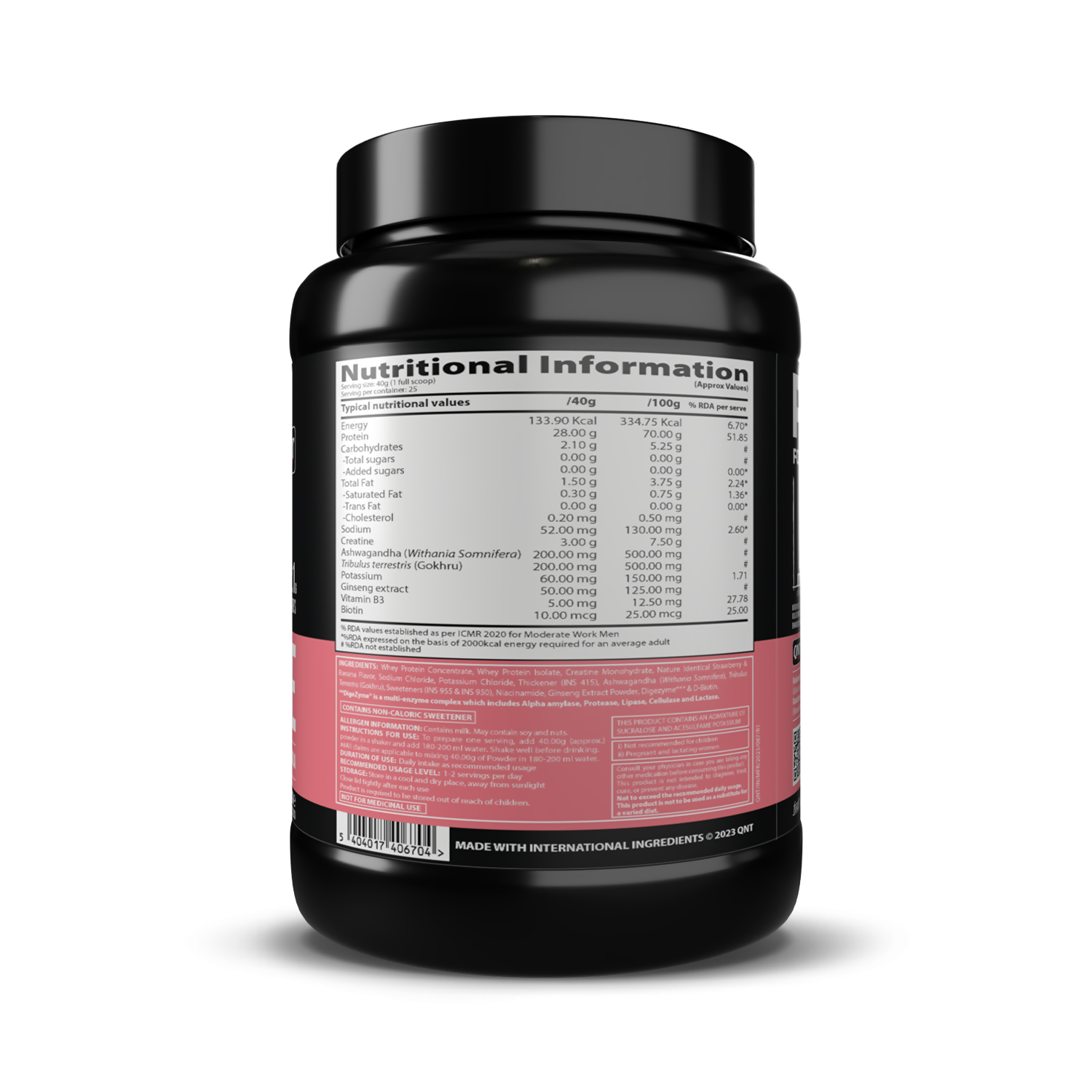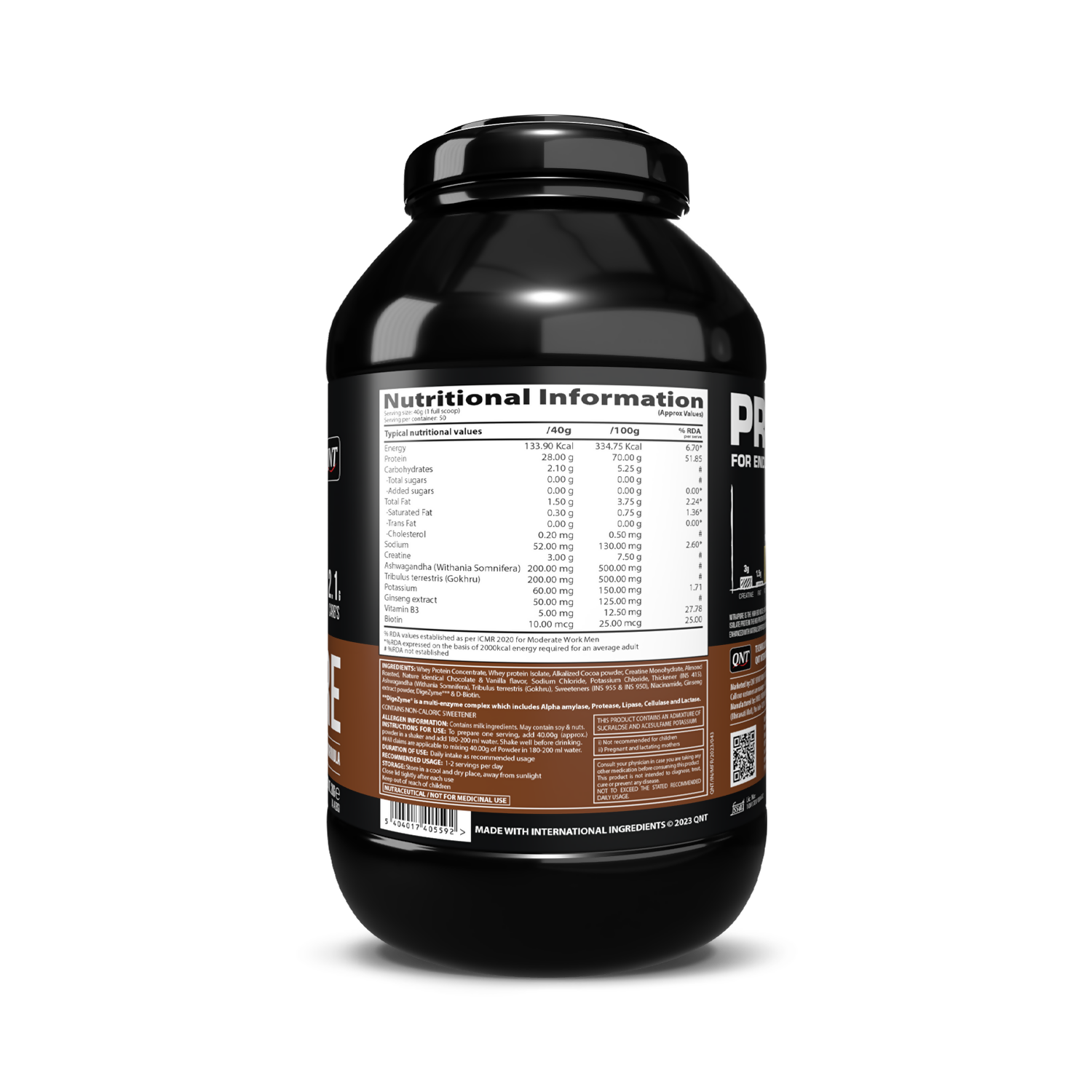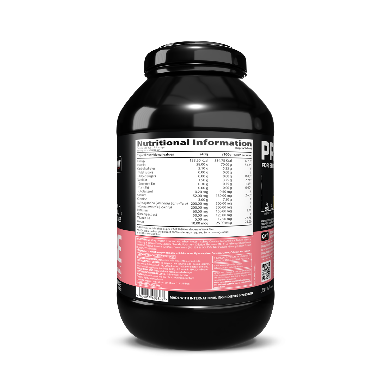 QNT Nitrapure, Blend of Whey Isolate & Concentrate | Enriched with Ashwagandha, Ginseng & Tribulus | Best Whey Protein for Muscle Gain | 28g Protein, 3g Creatine (per scoop)